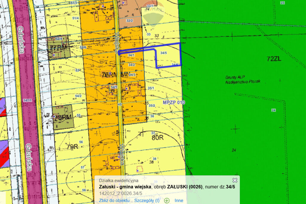 -- działki położone w miejscowości Załuski przy międzynarodowej